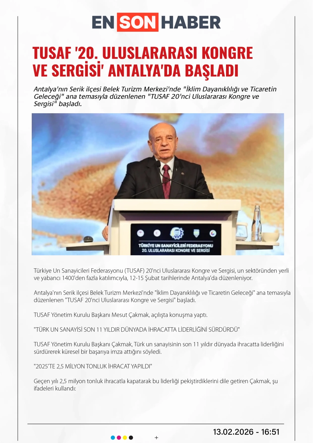 Türkiye nin en büyük gıda kongresi TUSAF ev sahipliğinde toplandı! Türk unu pazarlara...