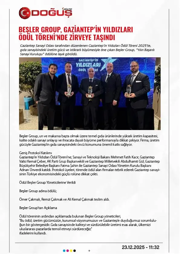 Beşler Group, Gaziantep in Yıldızları Ödül Töreni nde Zirveye Taşındı