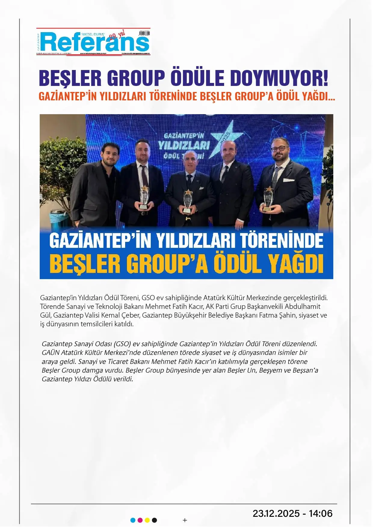 Beşler Group ödüle doymuyor! Gaziantep in Yıldızları Töreninde Beşler Group a ödül yağdı…