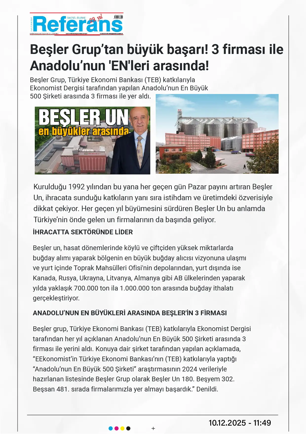Beşler Grup tan büyük başarı! 3 firması ile Anadolu’nun EN leri arasında!