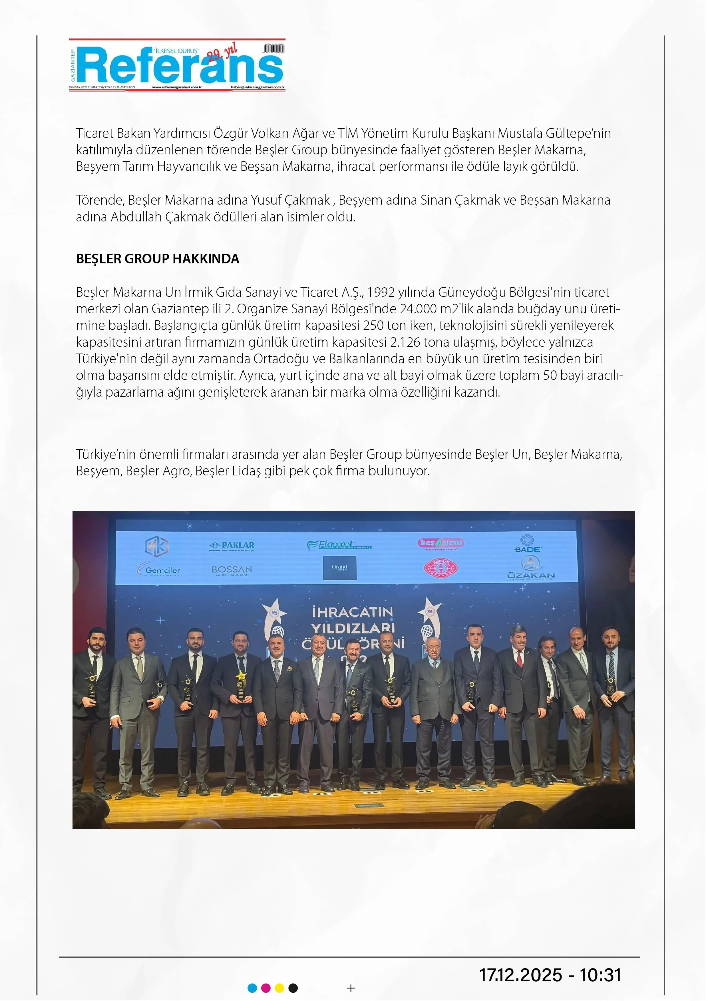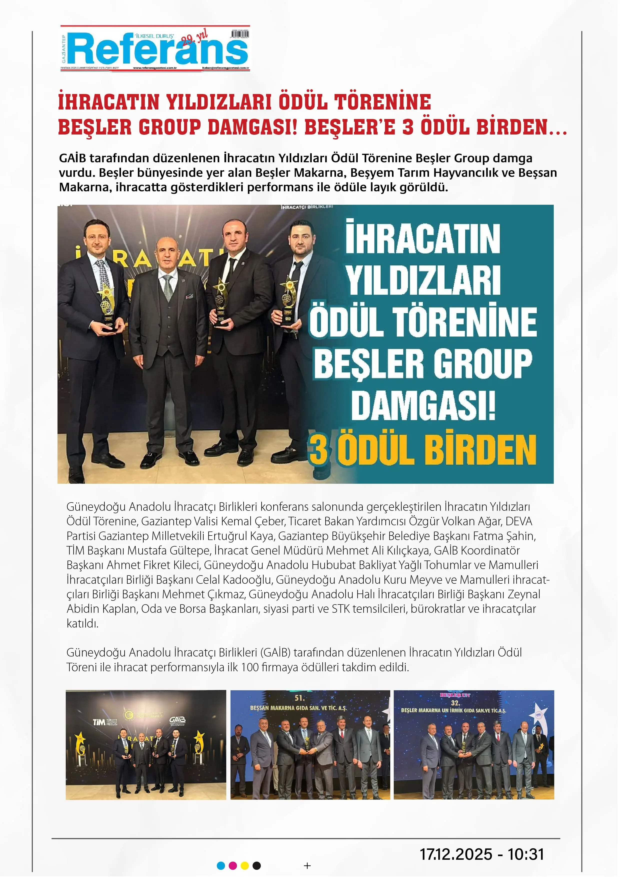 İhracatın Yıldızları Ödül Törenine Beşler Group damgası! Beşler e 3 ödül birden…