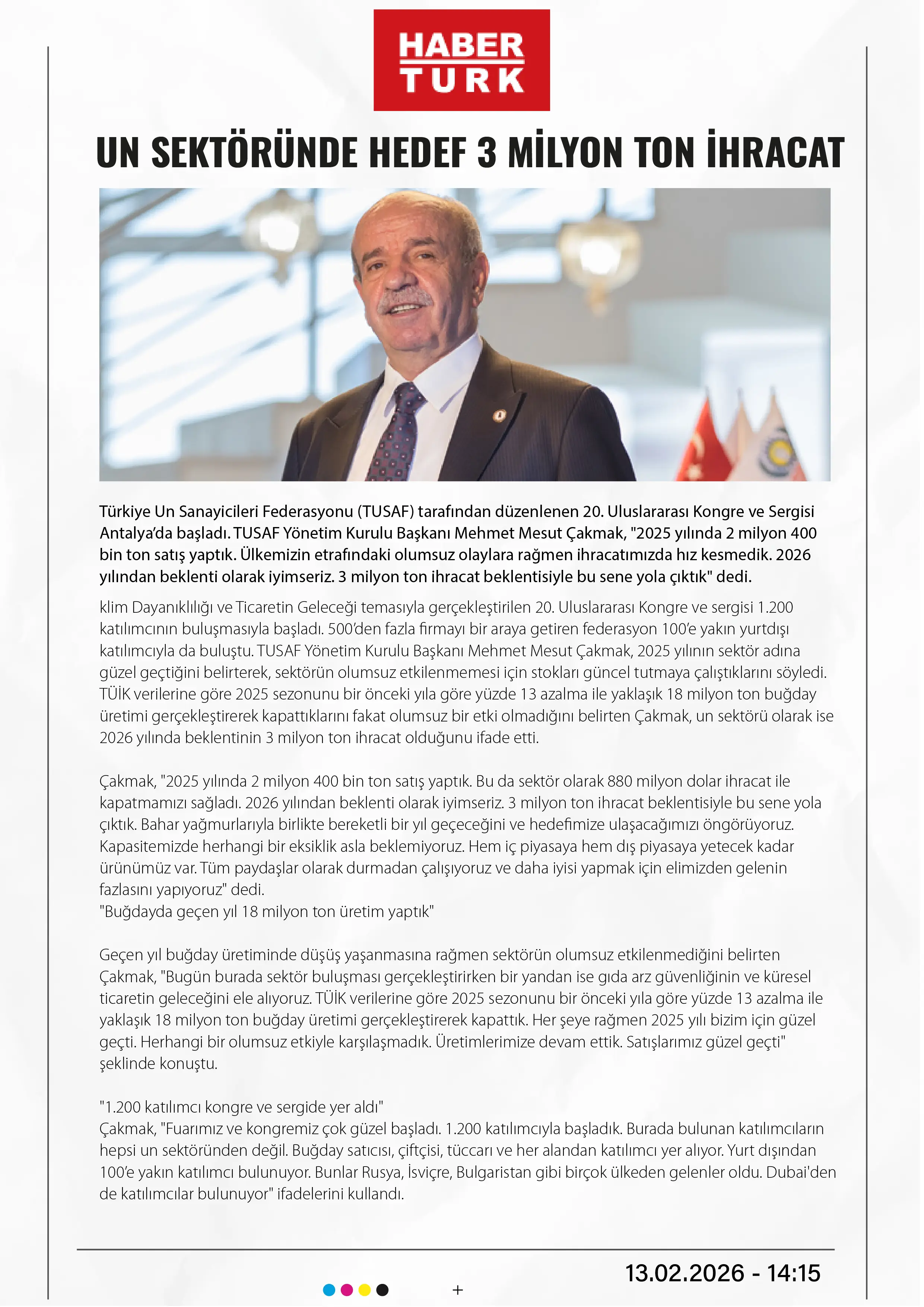 Un sektöründe hedef 3 milyon ton ihracat